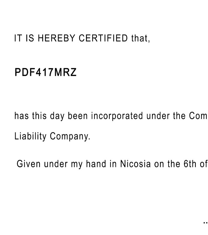 Fake Cyprus Certificate of Incorporation BL Business License PSD Template Description