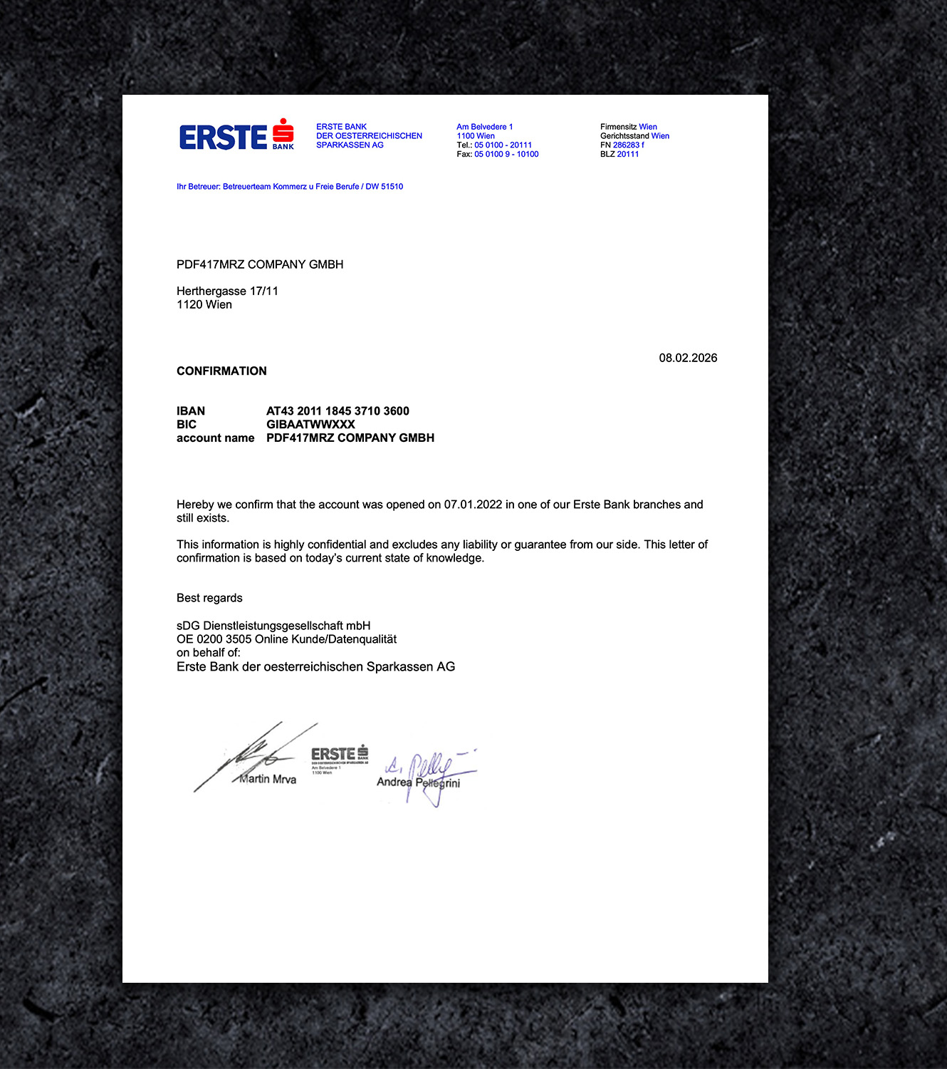 Fake Erste Bank Austria Statement PDF Template - 2026 Description