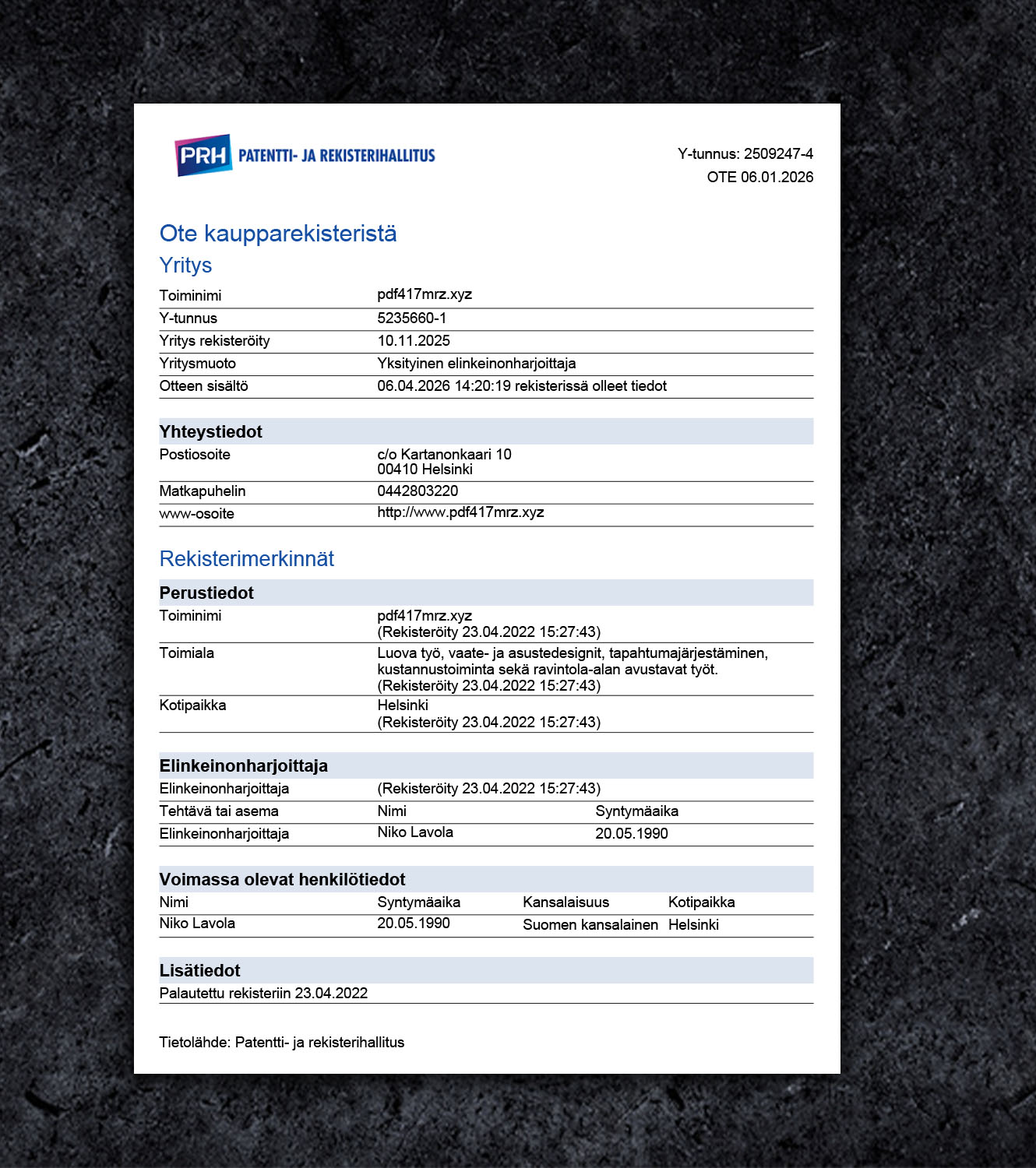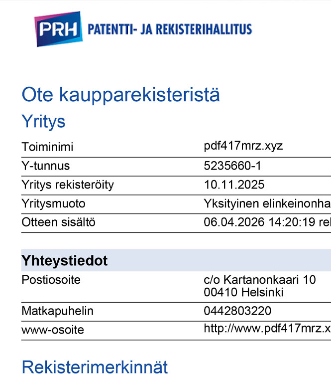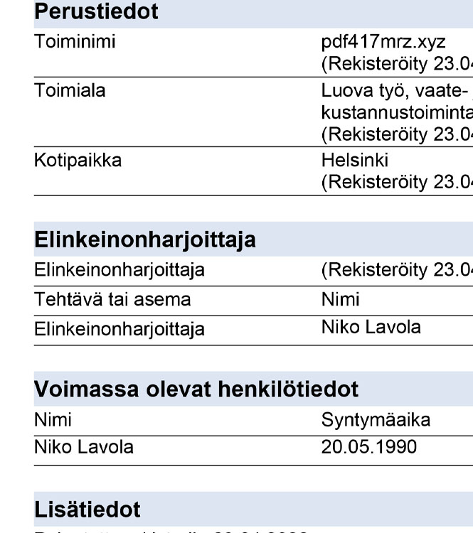 Fake Finland Certificate of Incorporation BL Business License PDF Template Description