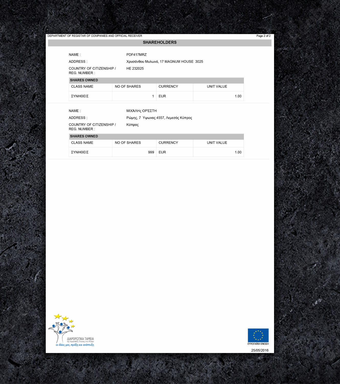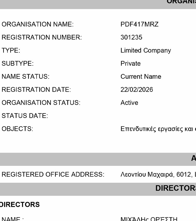 Cyprus Business Registry Extraction PSD Template - 2026