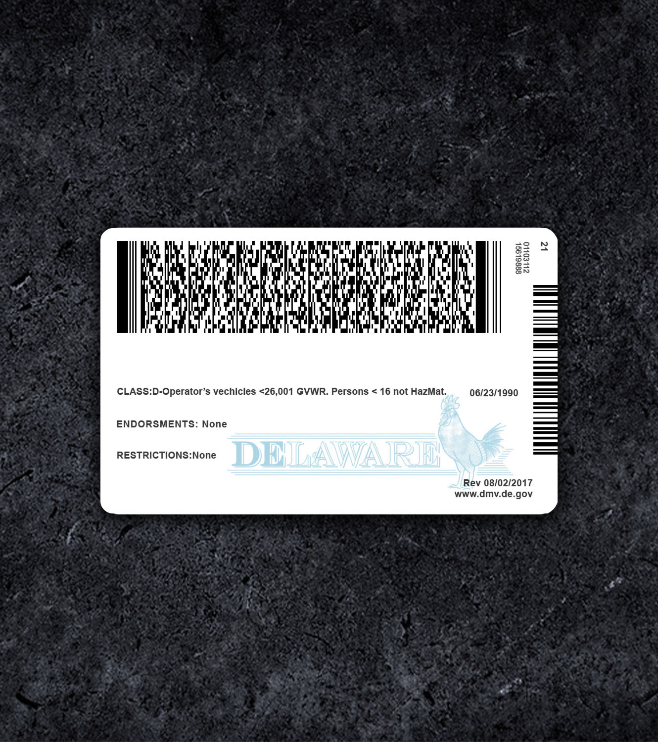 Our fully editable, high-quality Photoshop template makes it easy to design a professional-looking Delaware Driver License PSD Template - 2017. Simply personalize the template with your name, address, document number, date of birth, height, weight, photo, signature, PDF417 barcode, and expiration date.