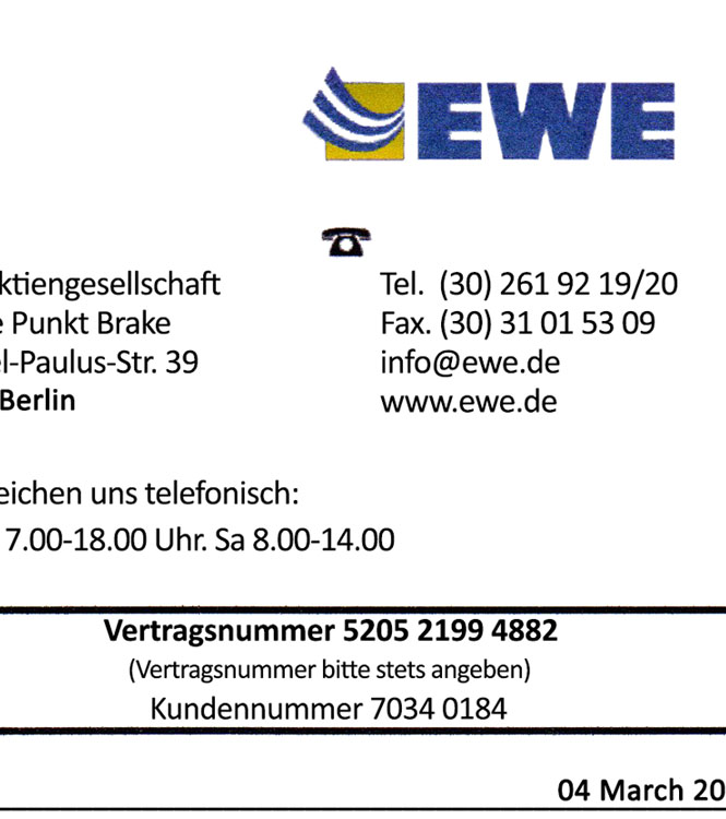 Ewe Germany DEU Bill PSD Template - 2024