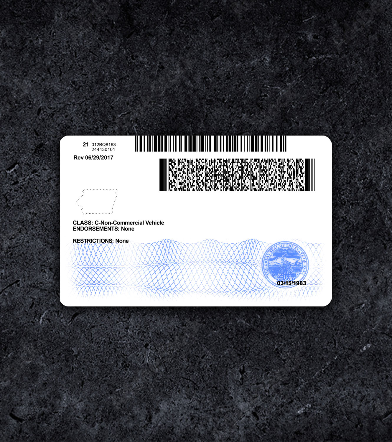 Fake Iowa IA Driver License PSD Template - 2017 Description