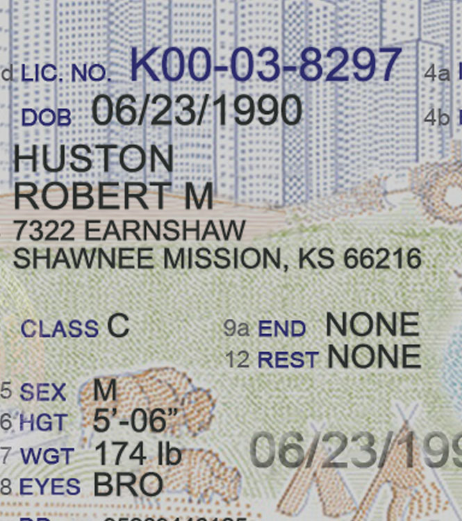 Our fully editable, high-quality Photoshop template makes it easy to design a professional-looking Kansas KS Driver License PSD Template - 2017. Simply personalize the template with your name, address, document number, date of birth, height, weight, photo, signature, PDF417 barcode, and expiration date.