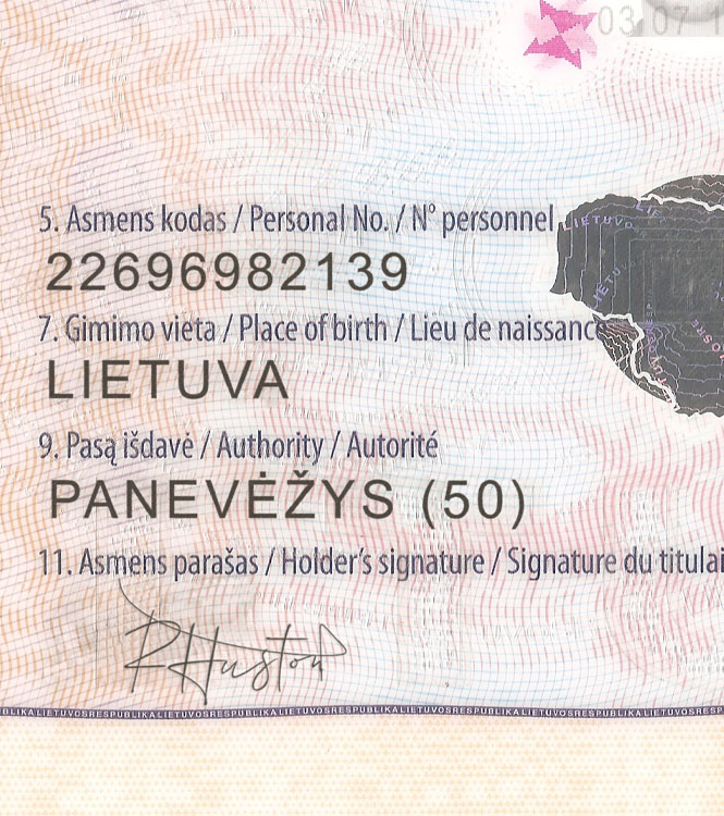 Features of Lithuania Passport PSD Template - 2011