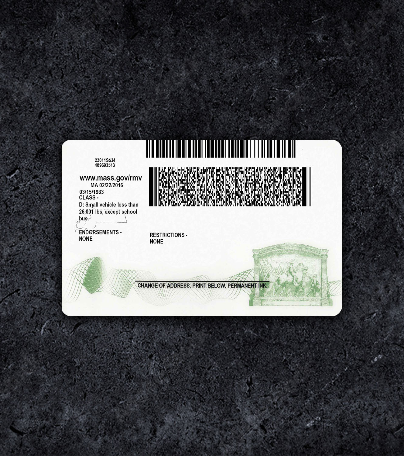 Fake Massachusetts MA Driver License PSD Template - 2016 Description