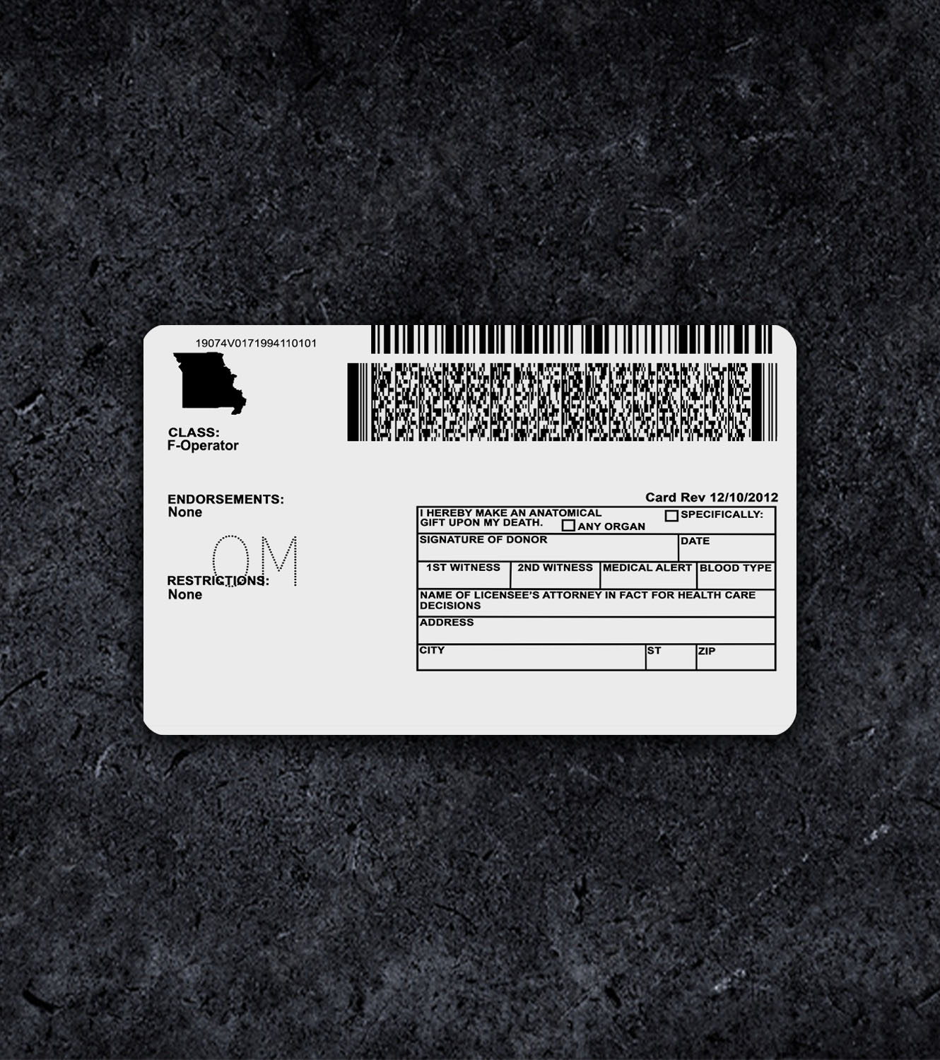 Fake Missouri MO Driver License PSD Template - 2012 Description