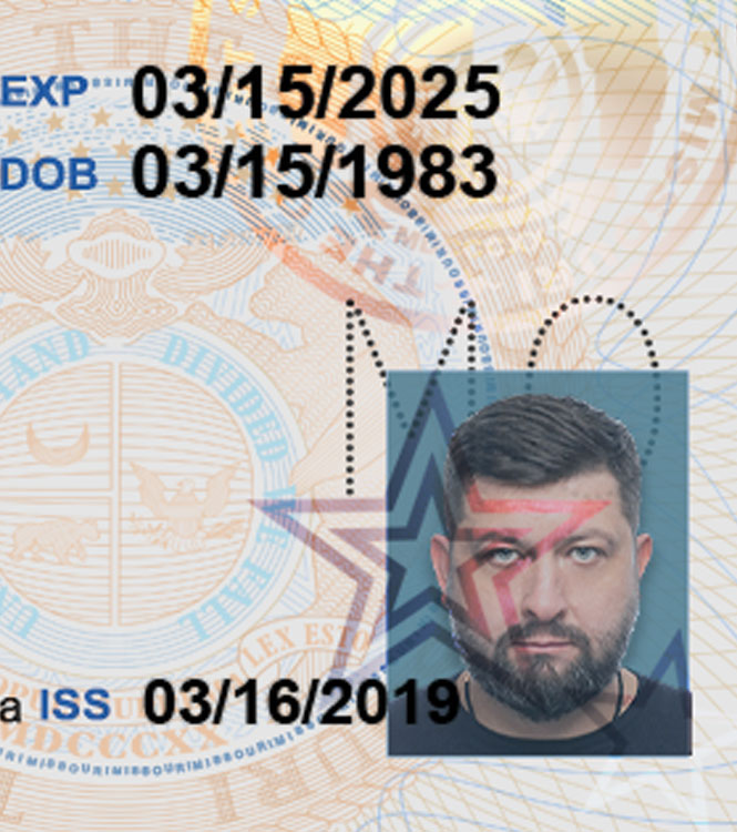 Our fully editable, high-quality Photoshop template makes it easy to design a professional-looking Missouri MO Driver License PSD Template - 2012. Simply personalize the template with your name, address, document number, date of birth, height, weight, photo, signature, PDF417 barcode, and expiration date.