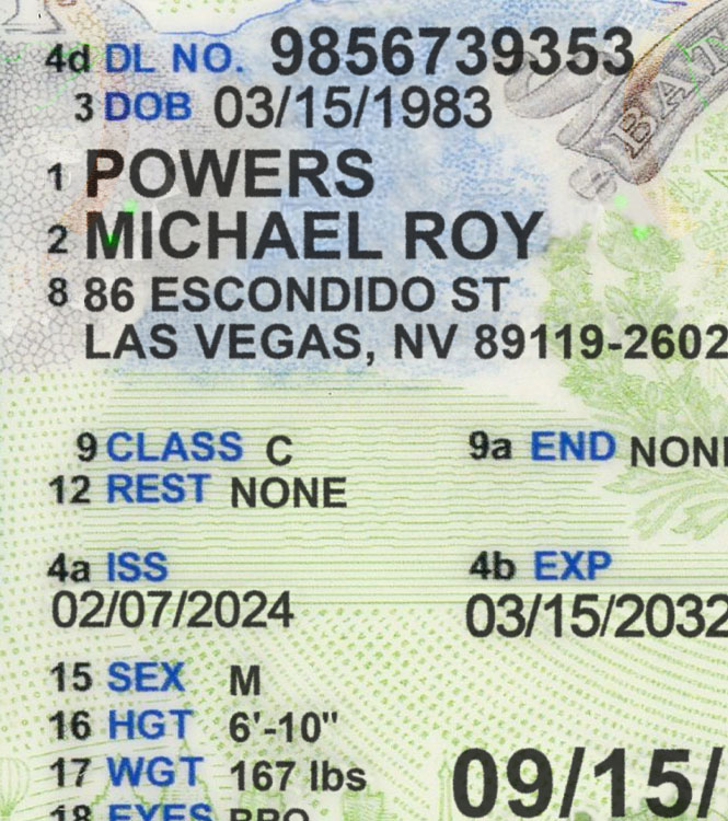 Our fully editable, high-quality Photoshop template makes it easy to design a professional-looking Nevada NV Driver License PSD Template - 2021. Simply personalize the template with your name, address, document number, date of birth, height, weight, photo, signature, PDF417 barcode, and expiration date.
