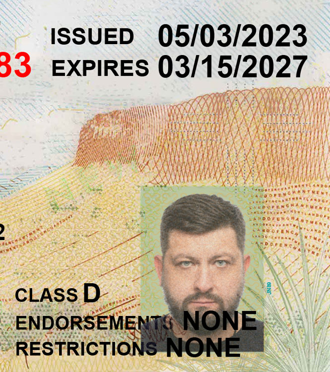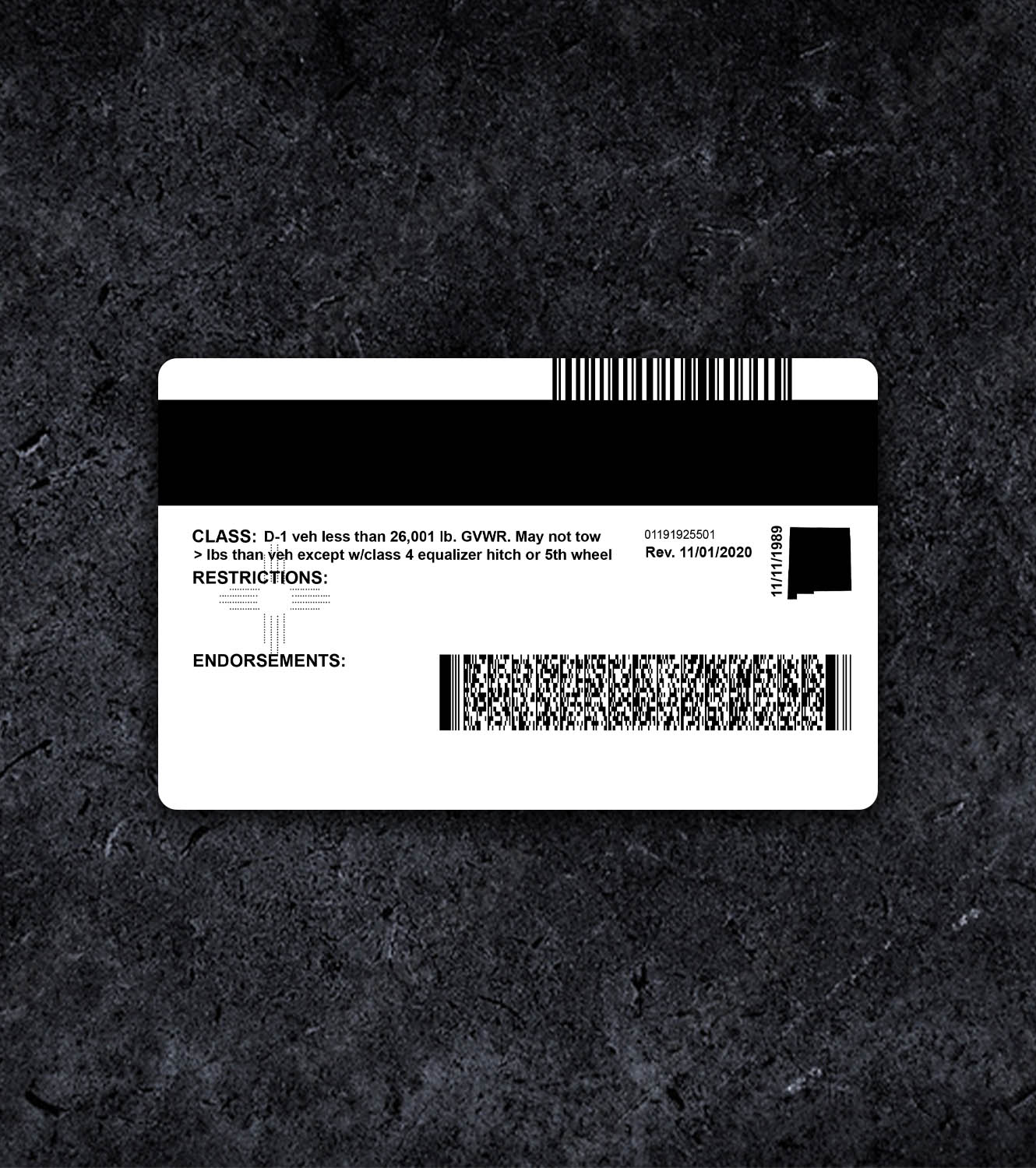 Our fully editable, high-quality Photoshop template makes it easy to design a professional-looking New Mexico NM Driver License PSD Template - 2019. Simply personalize the template with your name, address, document number, date of birth, height, weight, photo, signature, PDF417 barcode, and expiration date.