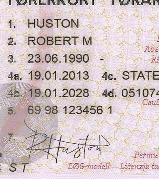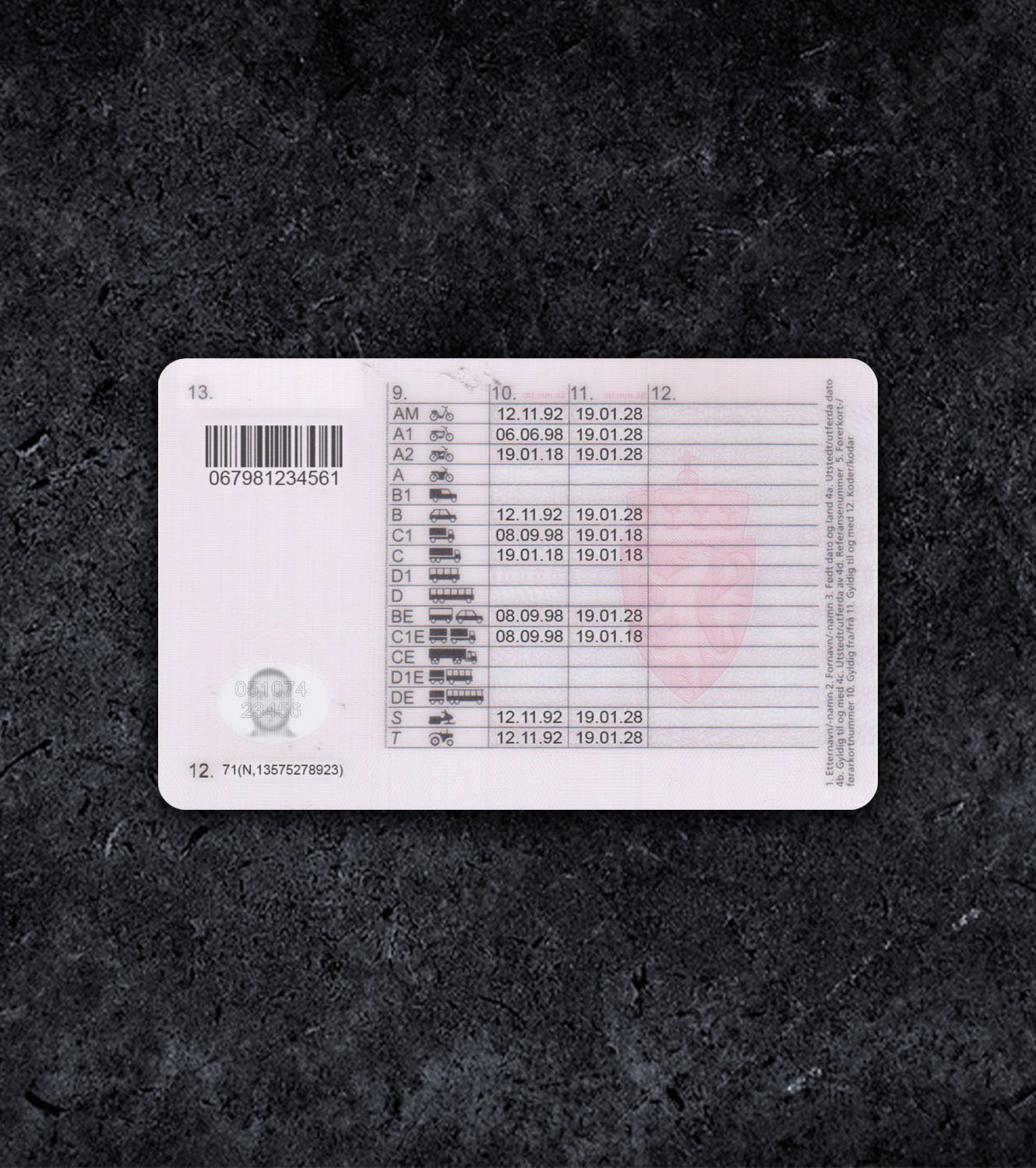 Our fully editable, high-quality Photoshop template makes it easy to design a professional-looking Norway Driver License PSD Template - 2013. Simply personalize the template with your name, address, document number, date of birth, height, weight, photo, signature, PDF417 barcode, and expiration date.