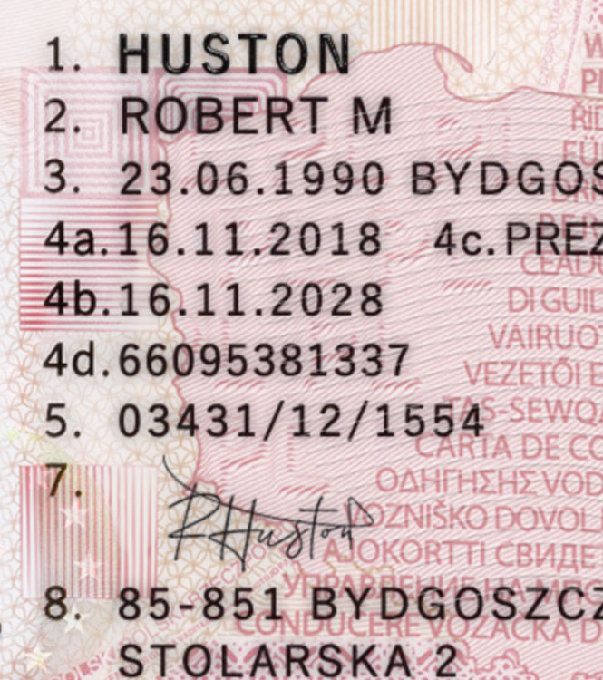 Our fully editable, high-quality Photoshop template makes it easy to design a professional-looking Poland PL Driver License PSD Template - 2013. Simply personalize the template with your name, address, document number, date of birth, height, weight, photo, signature, PDF417 barcode, and expiration date.