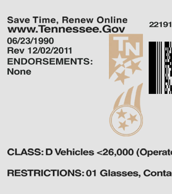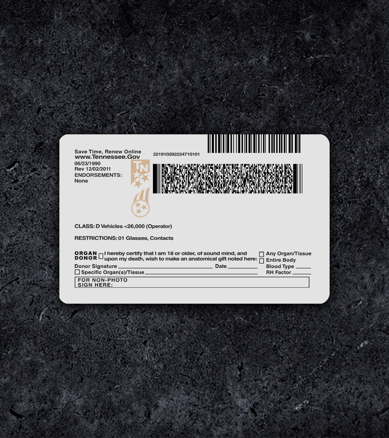 Fake Tennessee Driver License PSD Template - 2011 Description