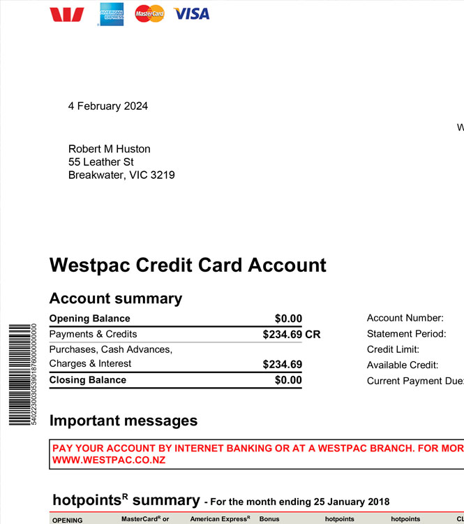 Westpac Statement PDF Template - 2024